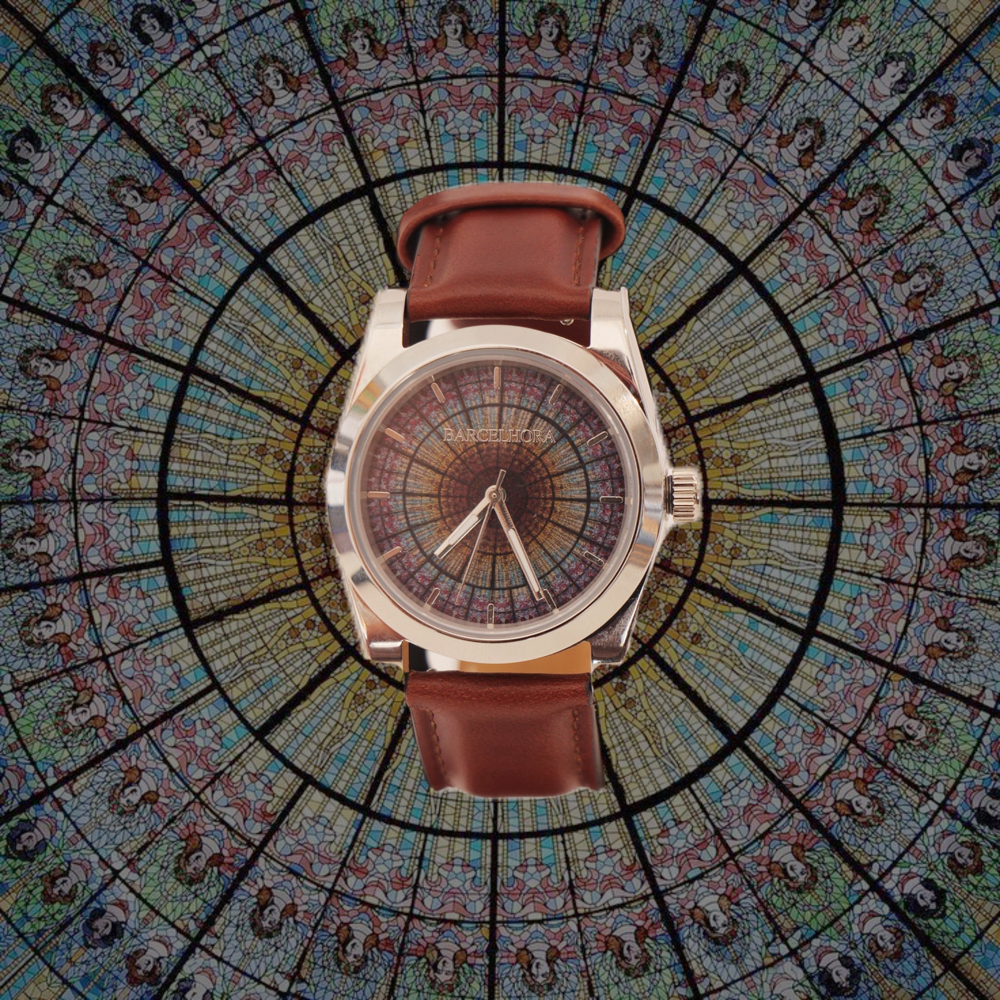 Watch inspired by the Palau de la Música Catalana, a modernist jewel by Lluís Domènech i Montaner. The dial evokes the iconic stained-glass skylight of the concert hall, reflecting the vibrant colors and organic forms that define Catalan modernisme.